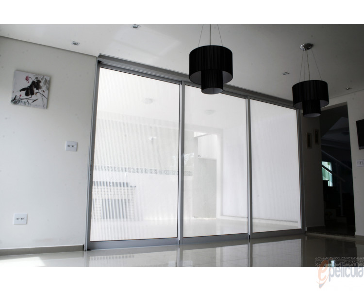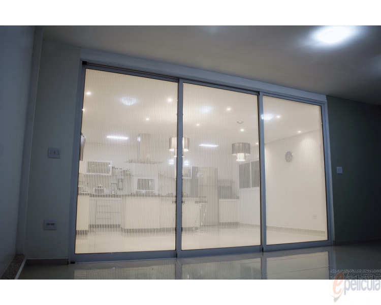 • Linda Película Decorativa Listra Degradêe, simulam efeito de persianas parcialmente abertas, instalação vertical. Agrega ao ambiente privacidade e requinte, elimina 95% do UV e torna o vidro anti-estilhaçante.